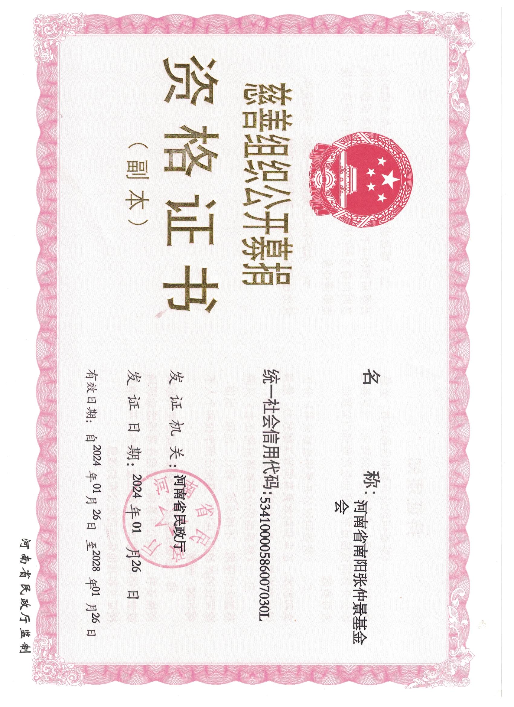 河南省南阳张仲景基金会成立于2011年11月,是河南省注册的社会公募慈善基金组织。业务主管单位是河南省卫生健康委,登记管理单位是河南省民政厅。登记证号为基证字第0063-G号,统一社会信用代码为53410000586007030L。
